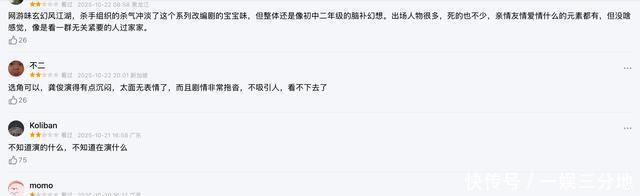 ●关于男主龚俊(饰“苏暮雨”) 首先,这位演员颜值没话说,服化道也有花钱的痕迹。但演技和台词实在让人揪心。观众吐槽:「演技台词都很僵硬,一定程度上来说选择龚俊是暗河传的一个败笔」。 他每次开口,好像预先背好稿子,然后严肃板着脸念出来,少了“情绪在升起”的感觉。 台词语气几乎无起伏:关键时刻该怒他不怒、该矛盾他不矛盾,感觉更像在念年终总结,不像杀手头子在生死线上挣扎。已有评论指出:“他说台词一直都是一个字一个字蹦出来,像一台老旧打字机……” 他与女演员互动时化学感低,毫无cp感。reddit上就有人说: “只要他跟女演员演对手戏,就跟木头人一样僵硬,也不知道该怎么跟她们互动” 他演技真的很木,非常的表面,表演痕迹非常重,嘴巴一说话还是让人很出戏,会让人把注意力全在他用力的嘴上。 而且,说他这几年“连续扑街”并非空穴来风。媒体指出:自从山河令爆红后,他已有“扑街的第七部剧”之说,播出的剧集均集连1000w也没有。特别提到的失败剧包括《狐妖小红娘·月红篇》(评分低、热度跌),还有《安乐传》也是被指出高投入低产出。所以,这次暗河传若想靠“男主扛起整剧”就有点勉强了。